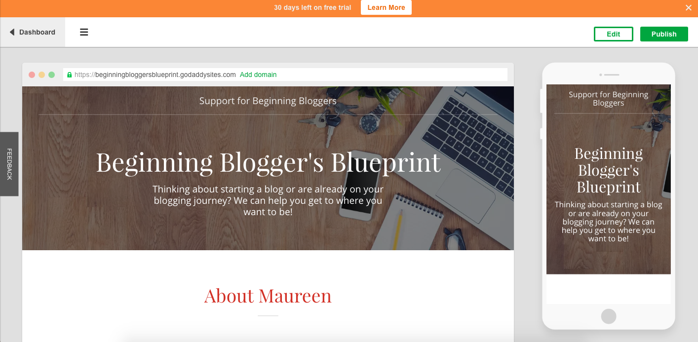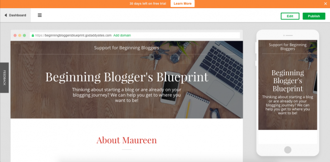 How can you not love this feature from GoDaddy! I think it’s amazing and it’s definitely one of the things that will help the blog industry grow. It’s nice that they’re offering this to those who’d like to build a site or start a blog!
