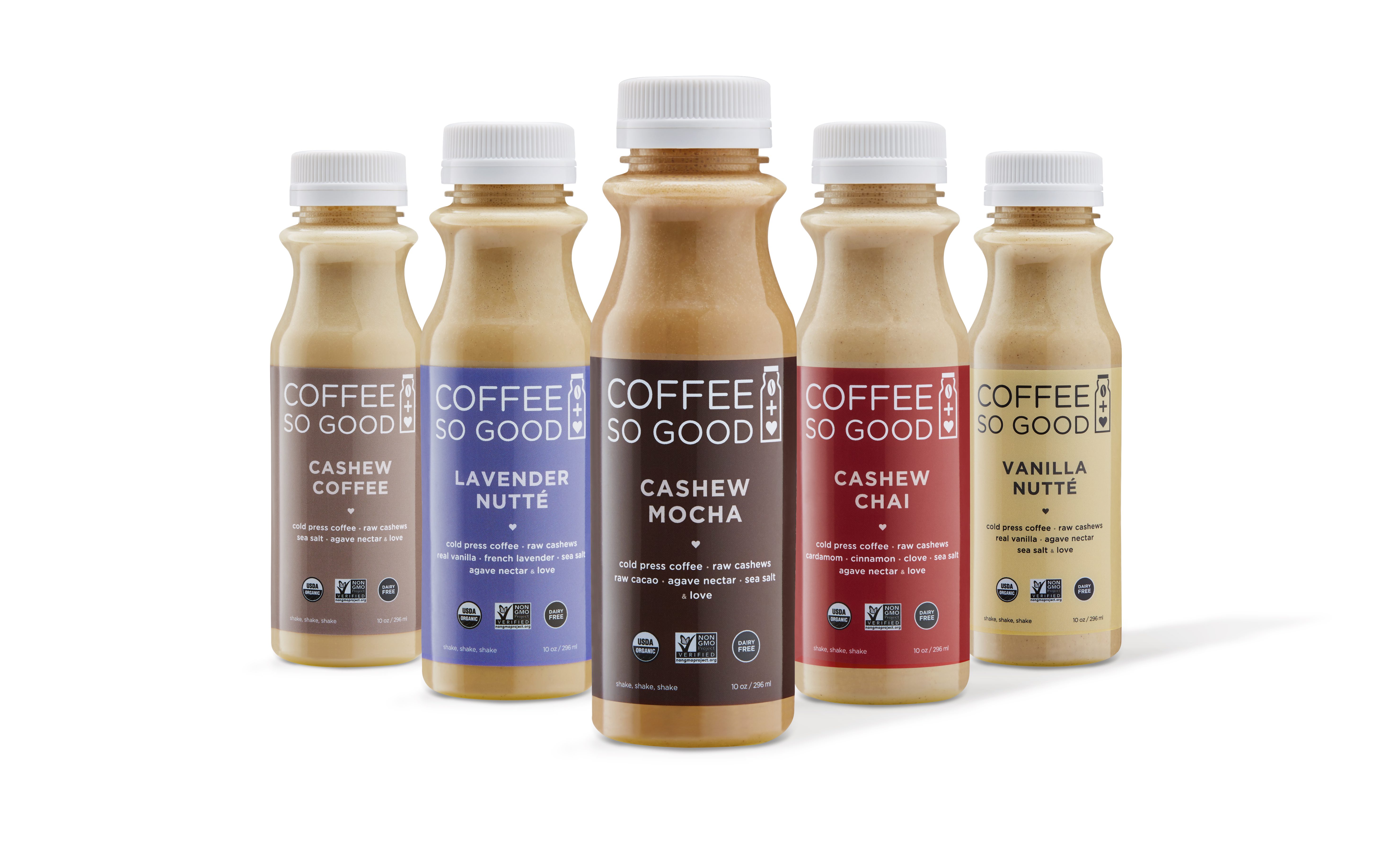 This creamy caffeinated beverage only tastes sinful, it’s actually your daily does of guilt-free, dairy-free cold brew coffee bliss. Made with only 100% organic and non-GMO verified ingredients each bottle is protein packed from the power of raw cashews. The delectable flavors come from real ingredients like french lavender and raw cacao, and never from ‘natural’ or artificial flavors or concentrates. As with everything So Good we never use additives or preservatives. Enjoy!