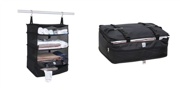 This three-tiered organizer folds down into carry-on-sized bags, saving up to 30 percent in space, and then unfolds for easy hanging in your room, without wrinkling a stitch. It even features a zippered laundry compartment so you can keep your dirty clothes separate from your clean ones.